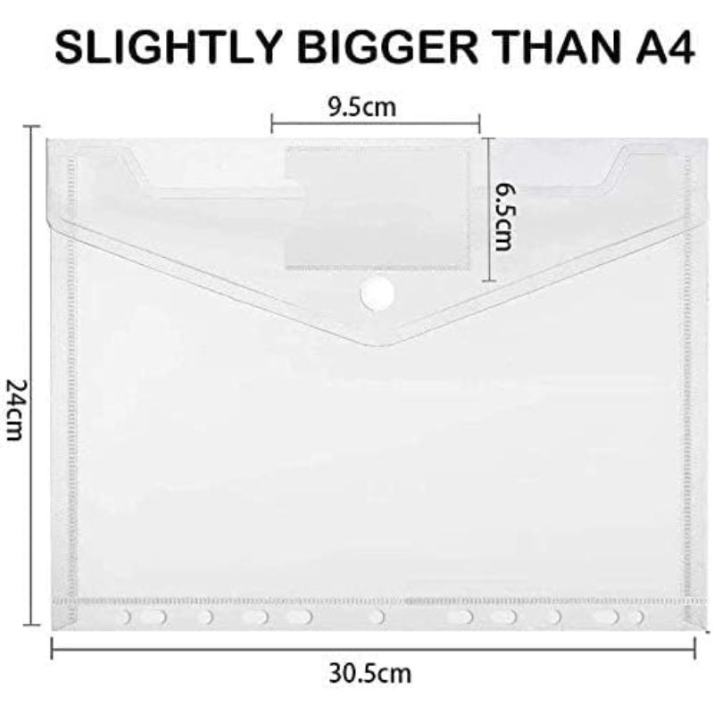 Rozměr obalů na dokumenty je 30 × 24 cm, takže formát A4 se do nich pohodlně vejde, a díky mírně většímu provedení je vkládání a vyjímání papírů velmi snadné. Zpevněný okraj a silnější materiál zajišťují odolnost i při pravidelném používání.