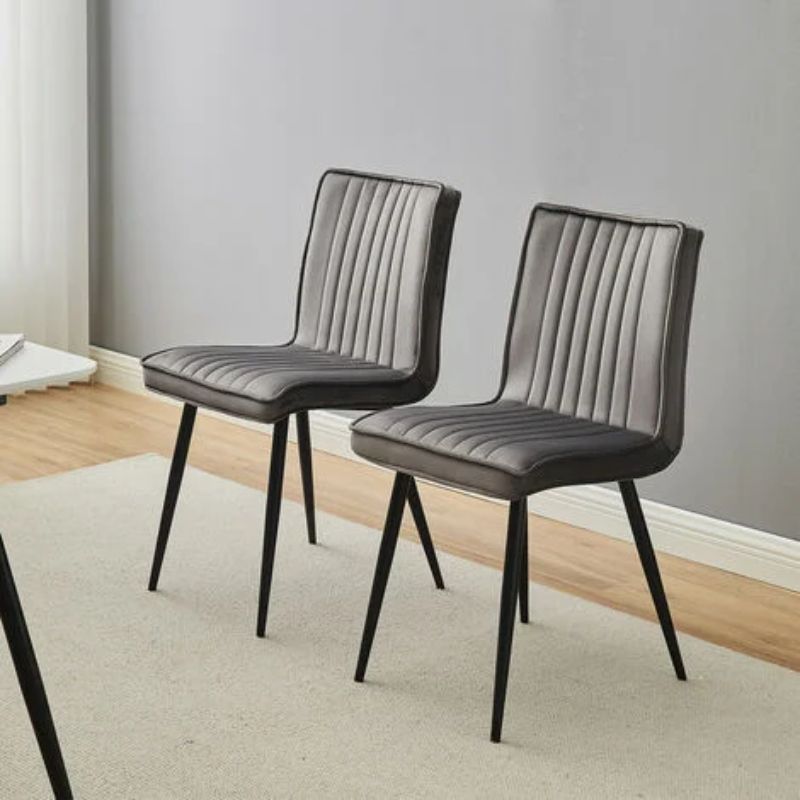 Tato sada 2 jídelních židlí nabízí elegantní vzhled a vynikající pohodlí v jakékoli jídelně nebo kuchyni. Sametový potah nejenže působí luxusně, ale je také odolný a snadno se čistí, což je ideální pro každodenní použití. Čalouněné sedadlo a opěradlo jsou ergonomicky navrženy tak, aby poskytovaly pohodlnou oporu i při delším sezení.