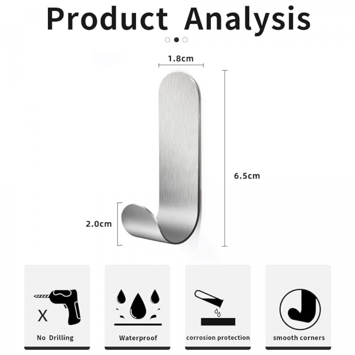 Inovativní samolepicí zadní strana háčků zajišťuje pevné přilnutí, takže je lze upevnit bez vrtání nebo nářadí. Ideální volba, pokud chcete zabránit poškození zdí nebo obkladů.