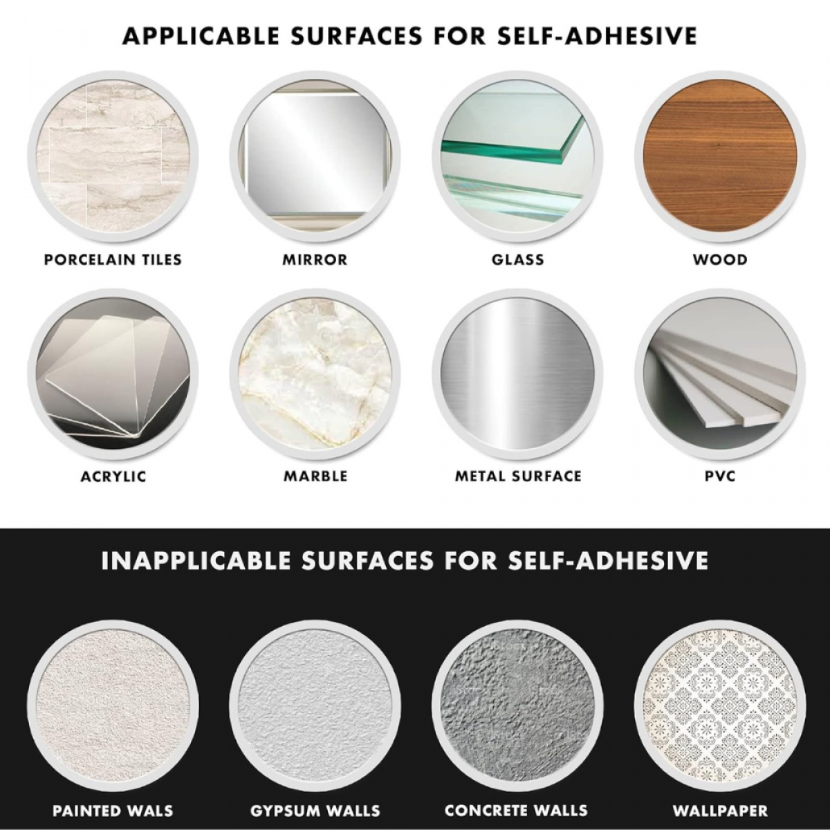 Samolepicí technologie umožňuje snadné připevnění na hladké, rovné povrchy, jako je sklo, dlaždice nebo dřevo. V případě potřeby lze odstranit bez stopy, takže je snadno přemístitelný.