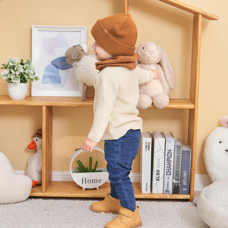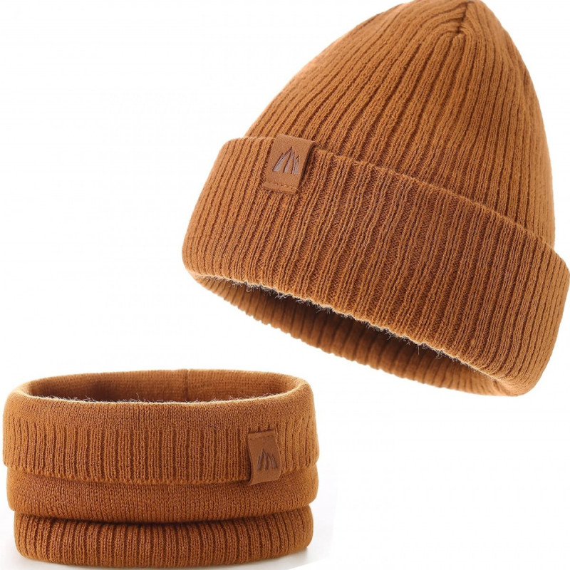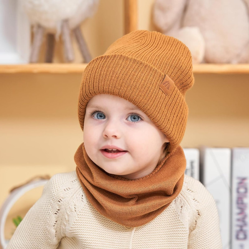 AHAHA čepice a kruhový šál sada pro malé děti - velikost M, hnědá, teplý zimní doplněk