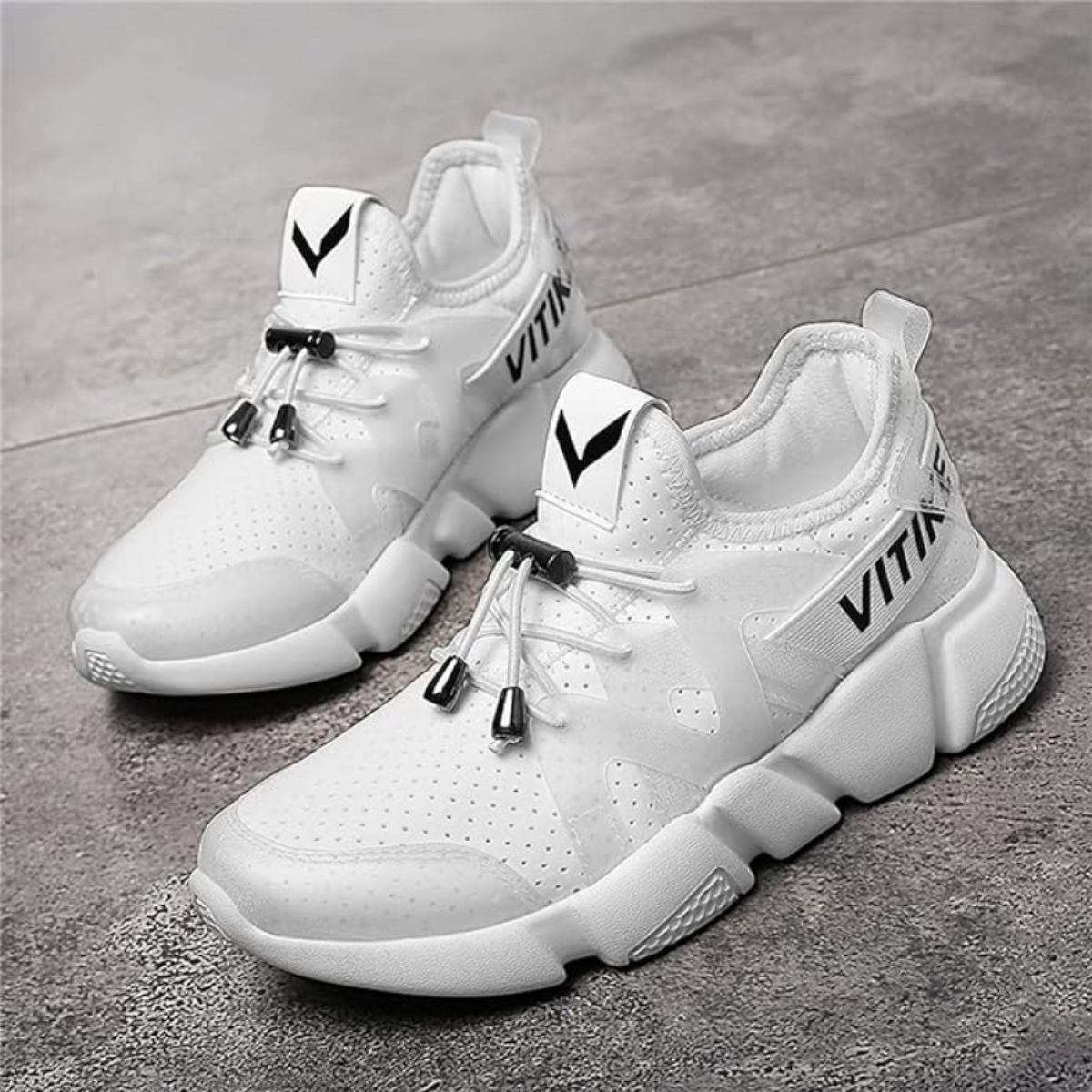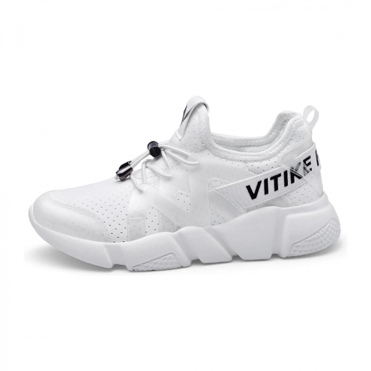 Bílé tréninkové boty Vitike s utahovacími tkaničkami nabízejí stylový vzhled a pohodlí všem, kdo rádi žijí aktivním životním stylem, aniž by se vzdali módního vzhledu.