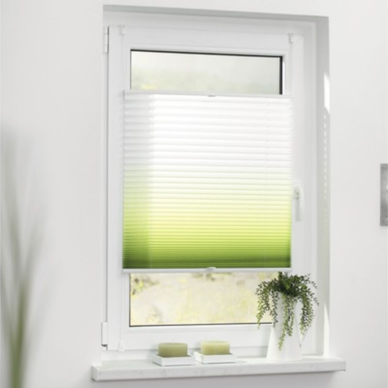 Plisé roleta s jednobarevným zeleno-bílým designem dodává každé místnosti moderní, ale zároveň nenápadný vzhled. 20 mm široké lamely zajišťují precizní skládání, a díky manuálně nastavitelnému ovládání lze snadno nastavit požadovanou výšku, a to shora i zdola. Produkt je zkracovatelný, takže jej lze snadno přizpůsobit přesnému rozměru okna.