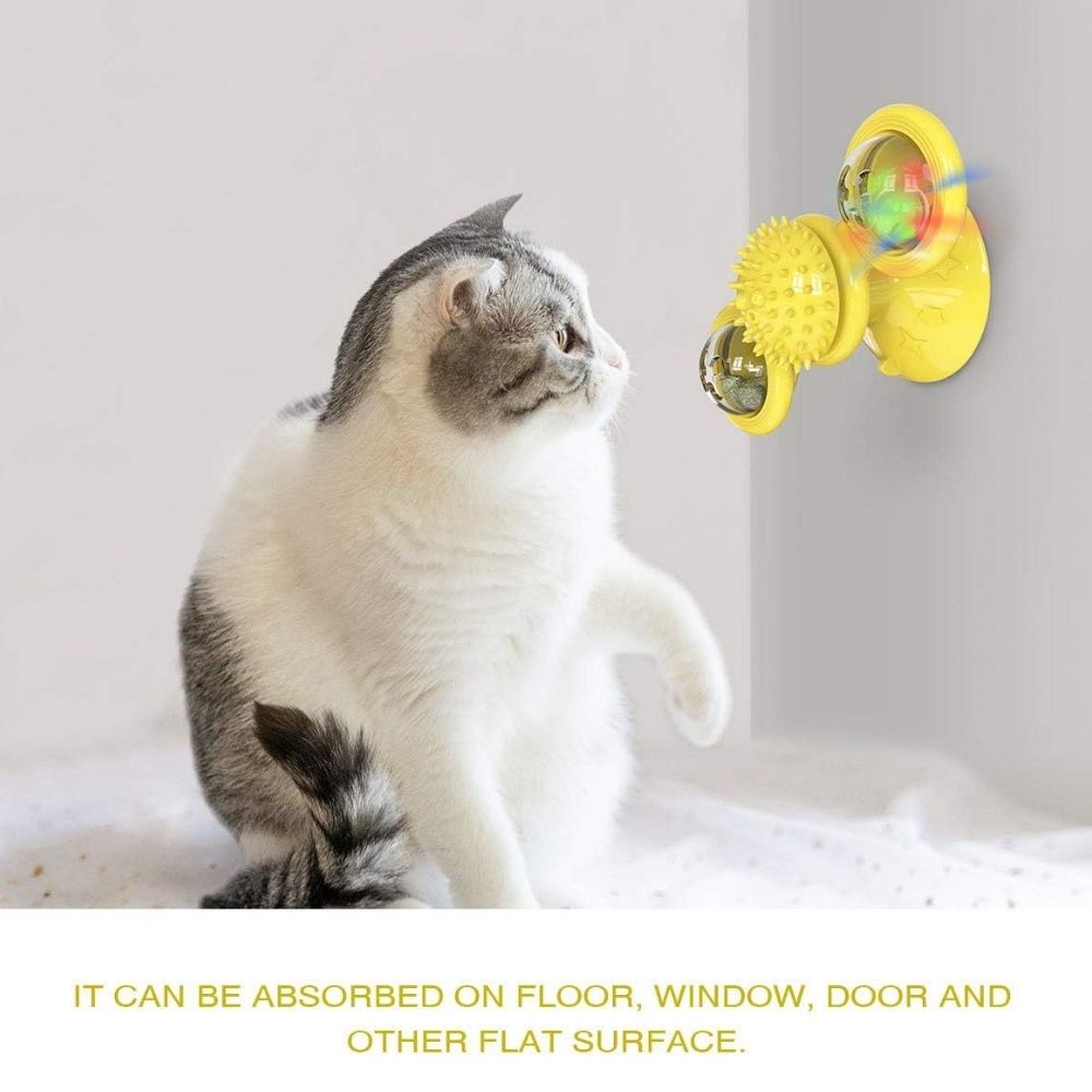 Když kočka větrný mlýn pošťouchne, otočí se a povzbuzuje ji k pohybu. Na dvou otáčivých lopatkách větrného mlýna můžete umístit do boxů blikající nebo kočičí kuličky (součást balení), které okamžitě upoutají pozornost kočky. Otáčivý pohyb hračky je dynamický, poskytuje zábavu a pomáhá vaší kočce vybít energii.