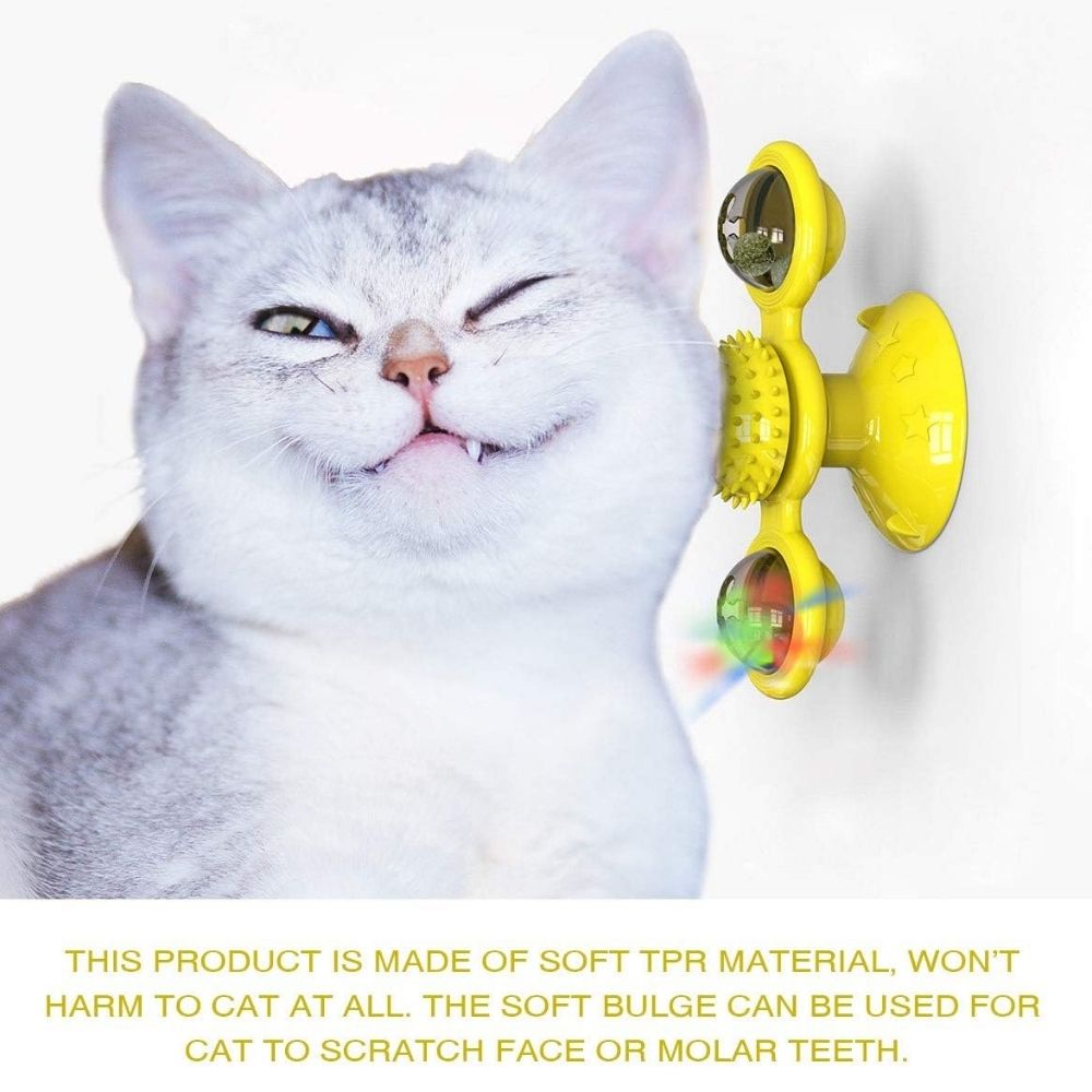 Díky hrotovité masážní hlavě uprostřed větrného mlýna je ideální pro čištění zubů vaší kočky nebo k okusování. Masážní hlava také umožňuje, aby si kočka třela hlavu a uklidnila se, což jí přináší příjemný pocit.