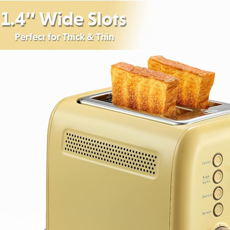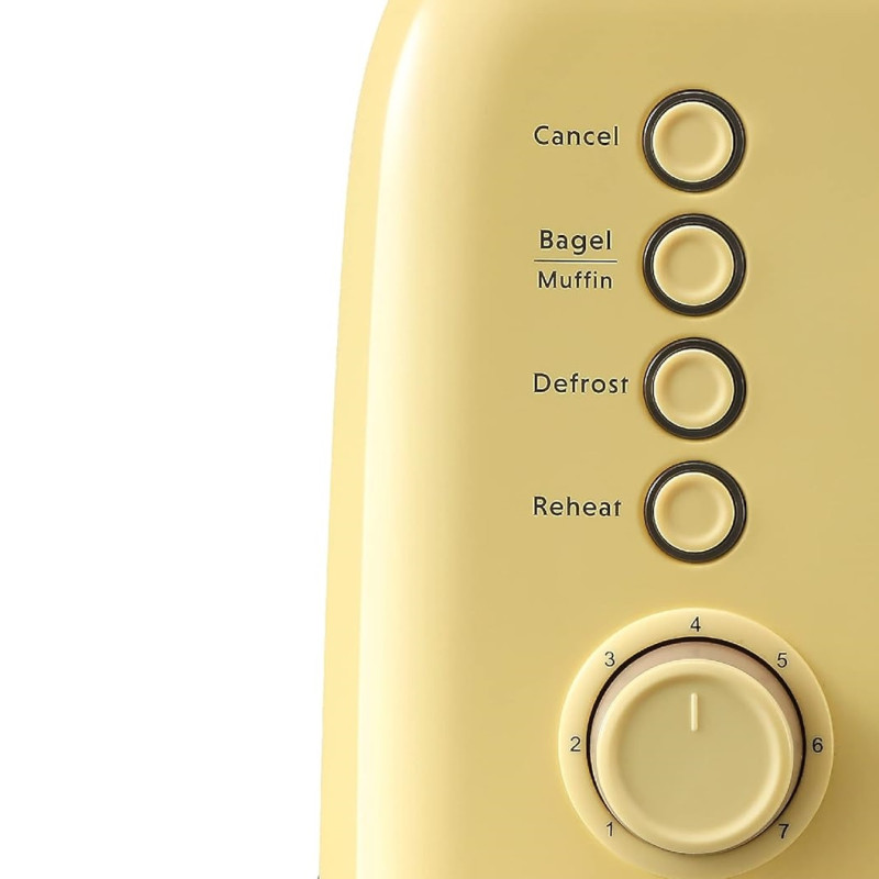 Buydeem DT620E Citromsárga 2 Plátkový Topinkovač - Extra Široké Otvory, 7 Stupňů Opékání, Funkce Bagelu