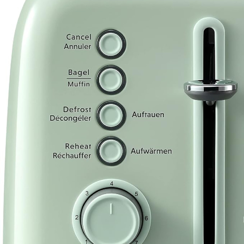 Toustovač má také funkci ohřevu a rozmrazování: rozmrazí zmražené pečivo a poté jej jemně ohřeje, aniž by ho spálil. Režim pro bagely a muffiny je zvlášť praktický, protože ohřívá obě strany a zároveň opeče nakrájenou plochu do křupava.