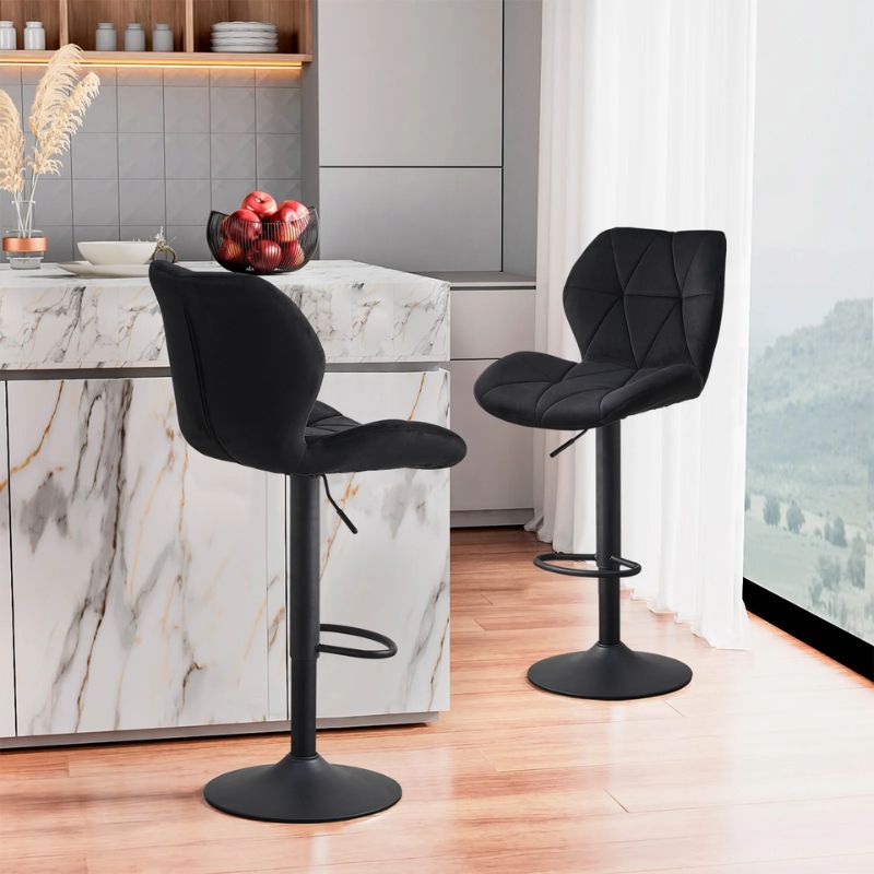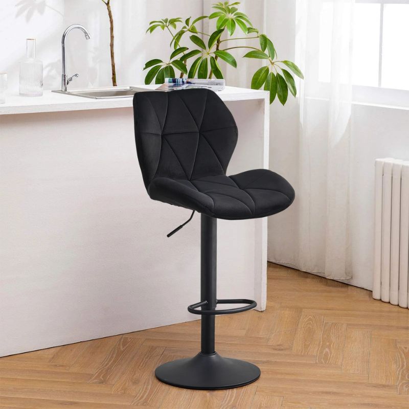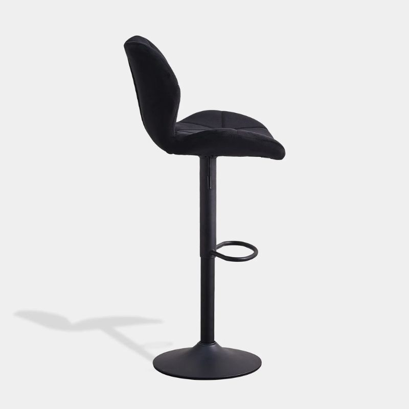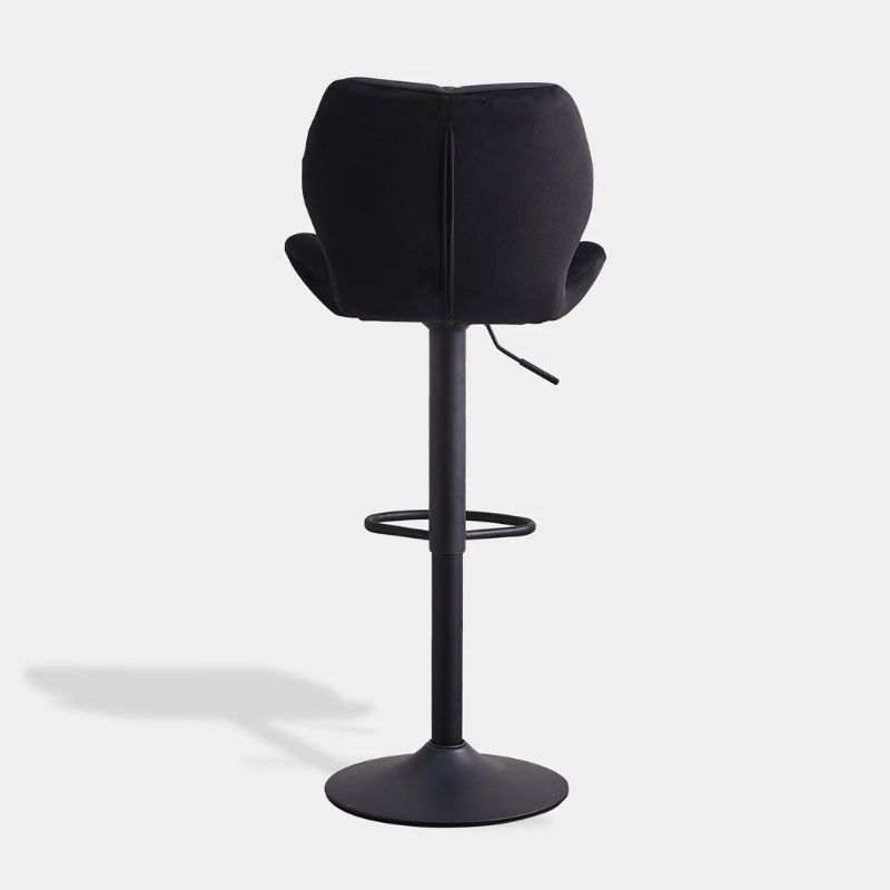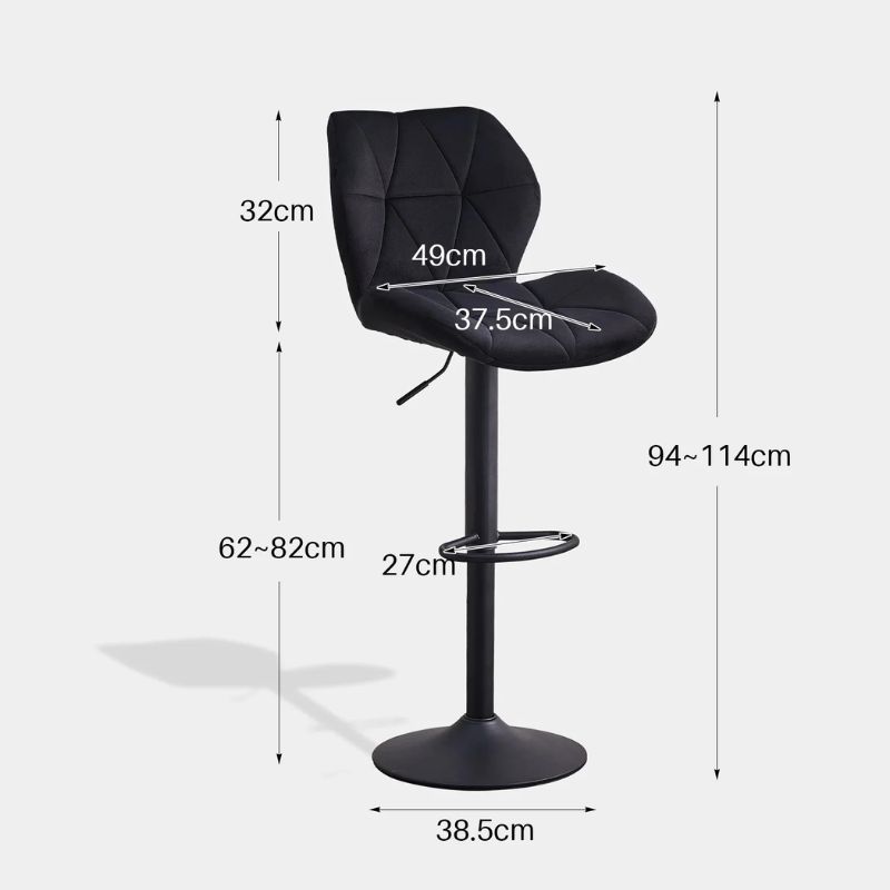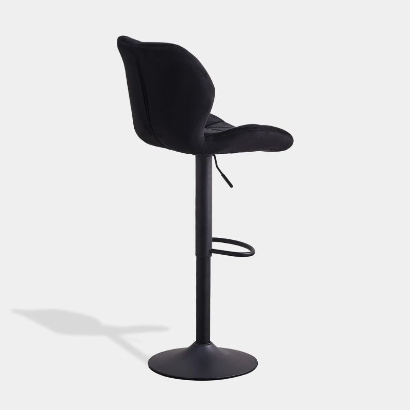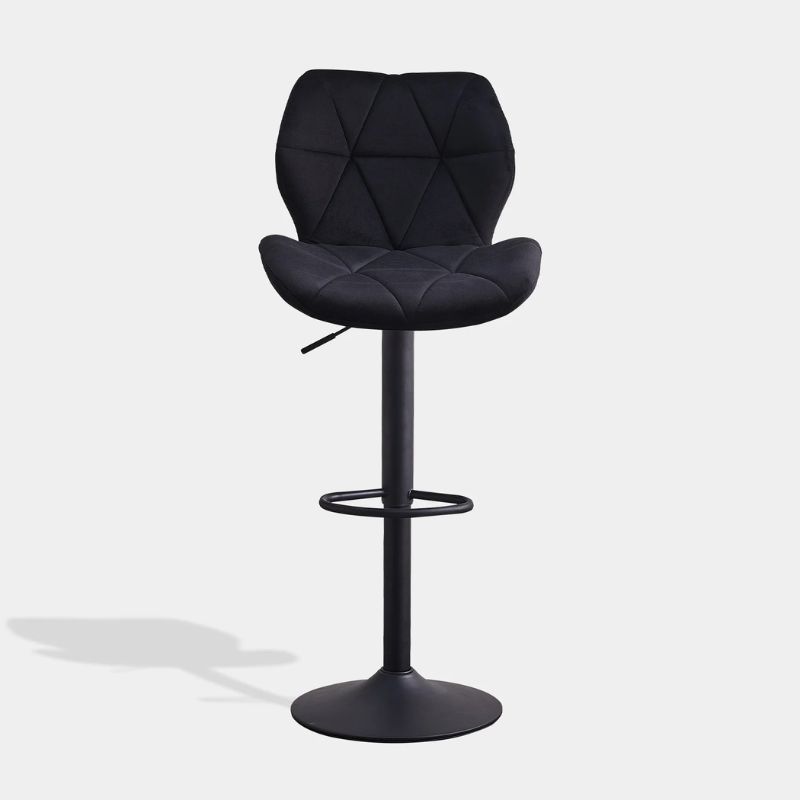 A Dexter barové židle nabízejí jedinečný styl a pohodlí pro jakýkoli moderní jídelní kout, kuchyň nebo bar. Černý samet potah dodává eleganci a měkkost, zatímco pevná kovová základna zajišťuje stabilitu a odolnost židlí. Židle jsou nastavitelné na výšku a otočné o 360°, což umožňuje přizpůsobené pohodlí pro každého uživatele.