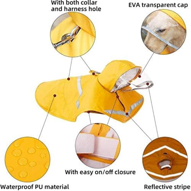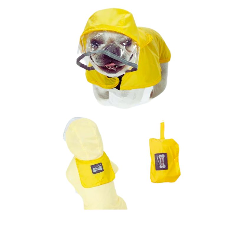 Kabát je nastavitelný na suchý zip u krku a břicha, takže se snadno a rychle obléká a vždy pohodlně sedí na těle psa. Průhledná kapuce chrání hlavu psa před deštěm, aniž by mu bránila ve výhledu. Díky integrovanému otvoru na vodítko lze kabát používat s obojkem nebo postrojem a praktická kapsa je vhodná pro uložení drobných doplňků.