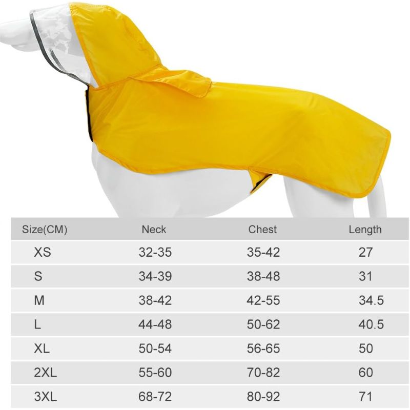 Dostupné v několika barvách (např. žlutá, modrá) a v 7 velikostech od XS do XXXL, takže je vhodné pro psy všech typů postavy.