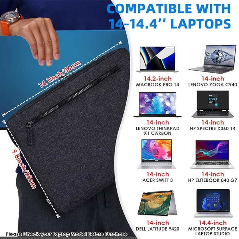 Pro 14palcové notebooky. Vnější rozměry: 37 x 26 x 1,9 cm, vnitřní rozměry: 36 x 25 x 1,7 cm (V x Š x H). Kompatibilní velikost notebooku: 14 palců. (: Délka a šířka notebooku musí být o něco menší než délka a šířka tašky na notebook, aby byla vhodná. Doporučujeme před nákupem změřit model notebooku a porovnat jej s rozměry tašky!;)
