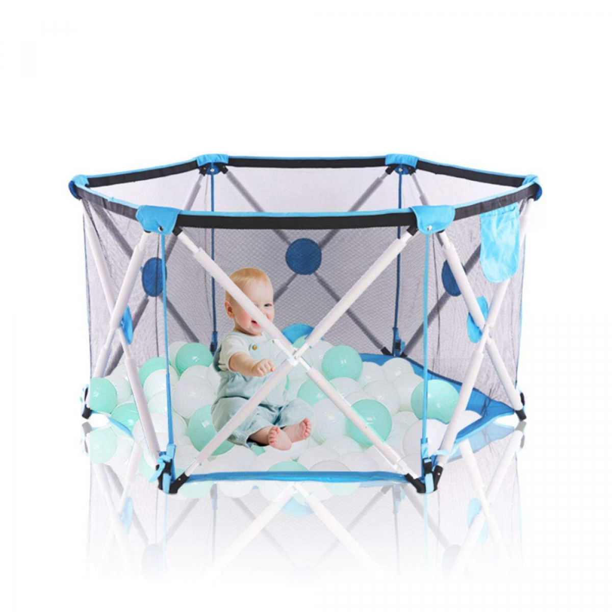 . Pružný síťový design: Zajišťuje větrání a umožňuje mamince kdykoli sledovat dítě během hry.