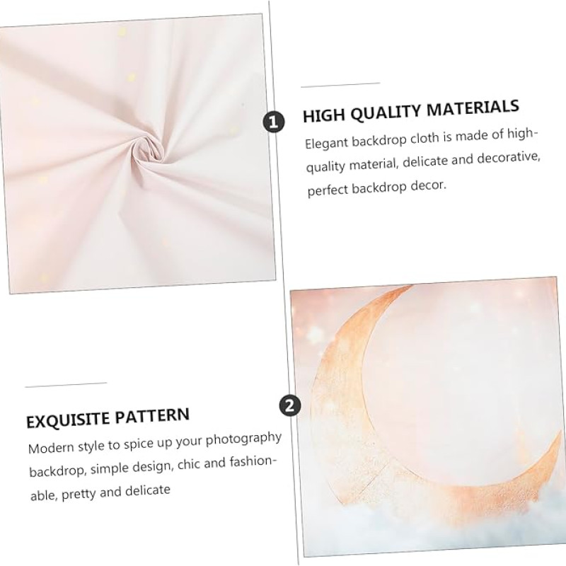 - Fotografické pozadí s měsícem: Pozadí lze použít také jako ubrus, má dostatečnou délku a šířku, aby správně pokrylo většinu velikostí jídelních stolů, praktické a spolehlivé.