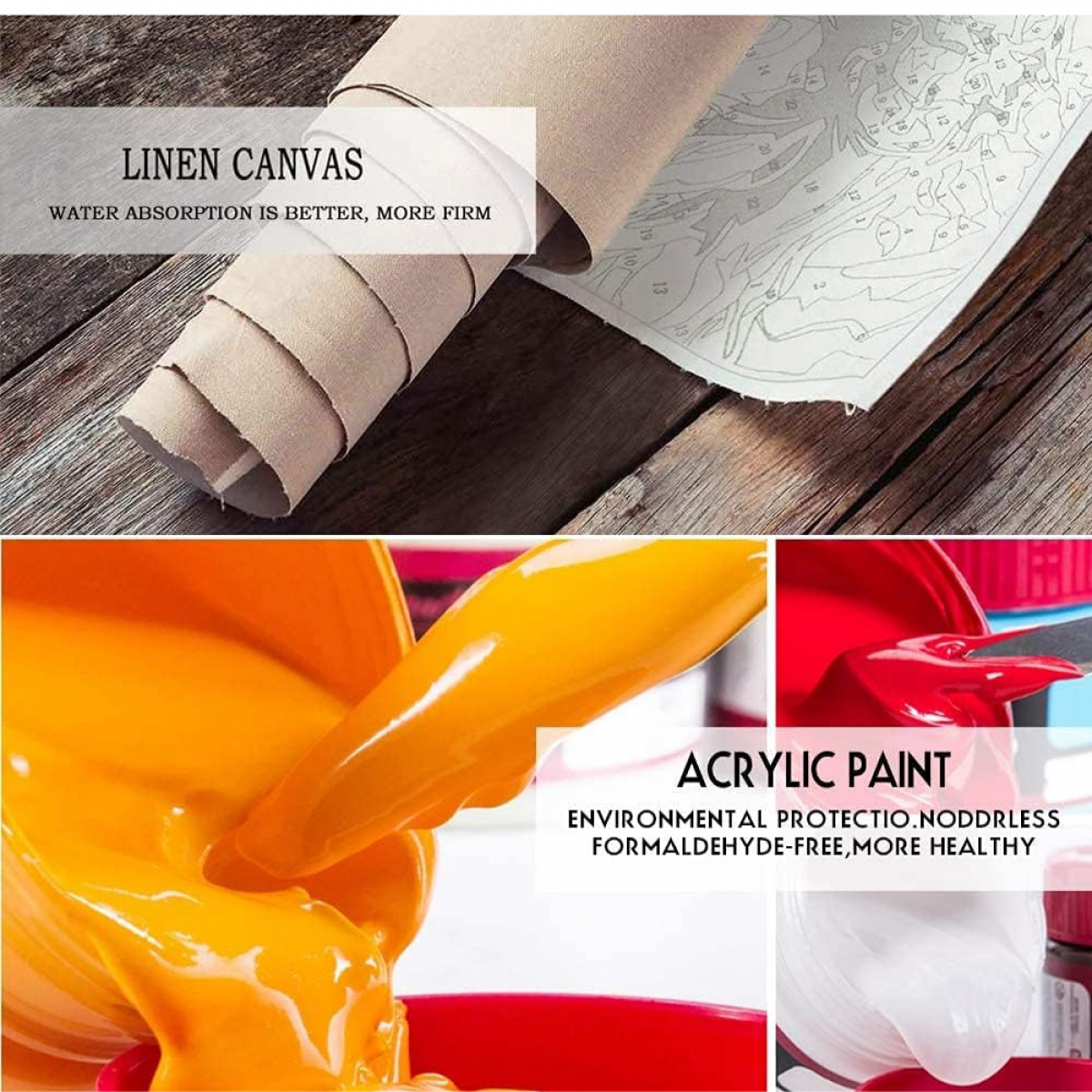 Neškodný materiál: Ekologické olejové barvy, živé barvy a dostatek pigmentu. Můžete plně rozvinout svou kreativitu na vysoce kvalitním barevném plátně, aniž byste se museli obávat, že barva poškodí tělo.