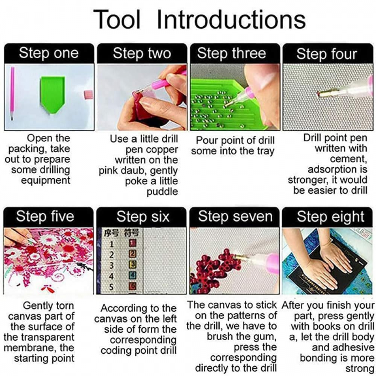 HD plátno: diamantové doplňky obsahují voděodolné olejové barvy. Písmena a symboly vytištěné na plátně jsou snadno čitelné. Lepidlo je silné, takže diamanty nespadnou. K sadě je přidáno o 30 % více diamantů, takže jich je dost na dokončení obrazu.