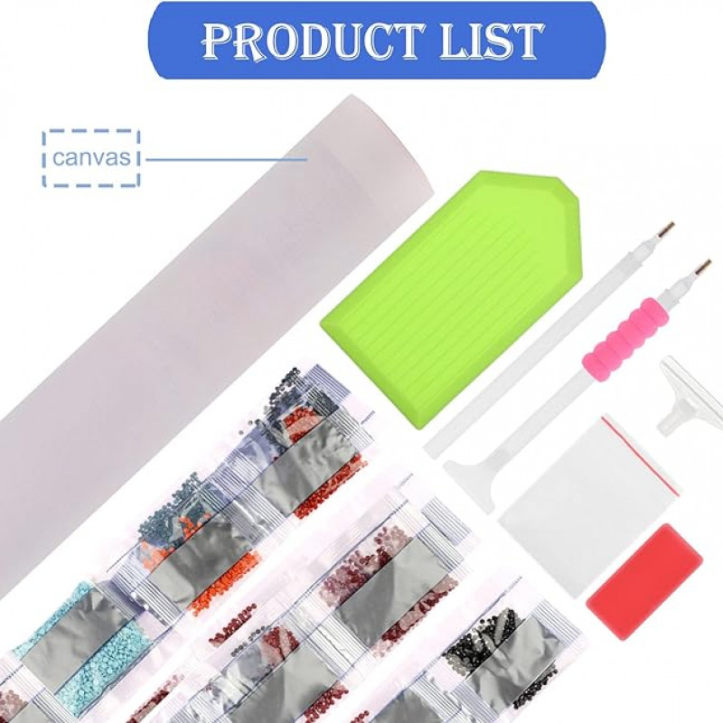 HD plátno: diamantové doplňky obsahují voděodolné olejové barvy. Písmena a symboly vytištěné na plátně jsou snadno čitelné. Lepidlo je silné, takže diamanty nespadnou. K sadě je přidáno o 30 % více diamantů, takže jich je dost na dokončení obrazu.