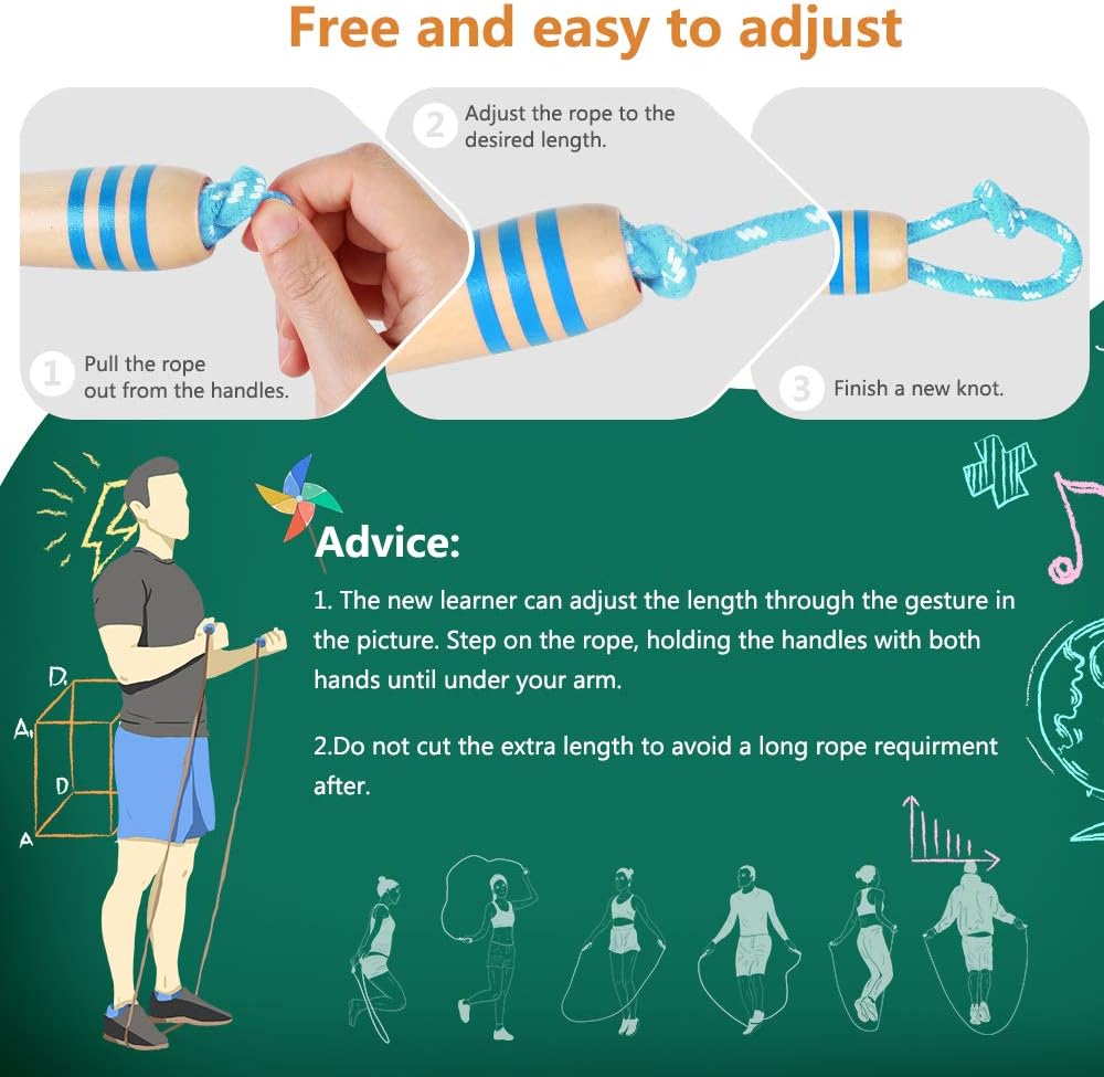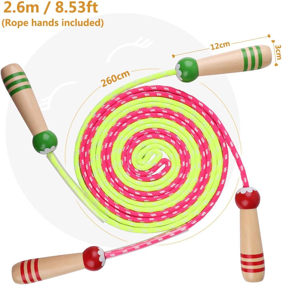 Sada dětských švihadlových lan Hianjoo se 2 kusy je ideální volbou pro aktivní pohyb, hru a trénink dětí, s ergonomickou dřevěnou rukojetí a nastavitelným bavlněným lanem pro pohodlné použití.