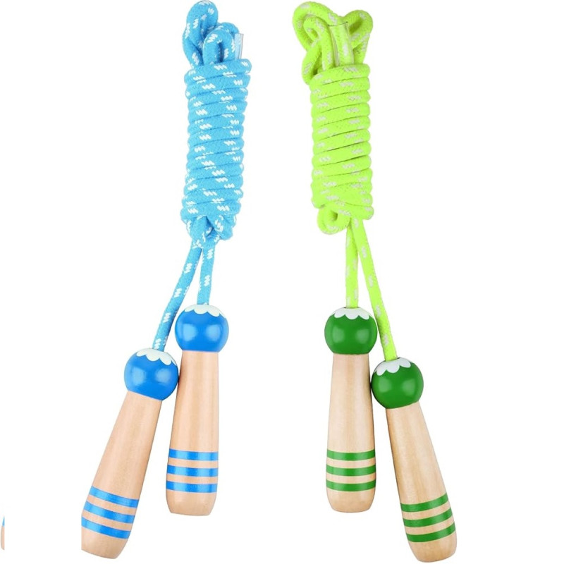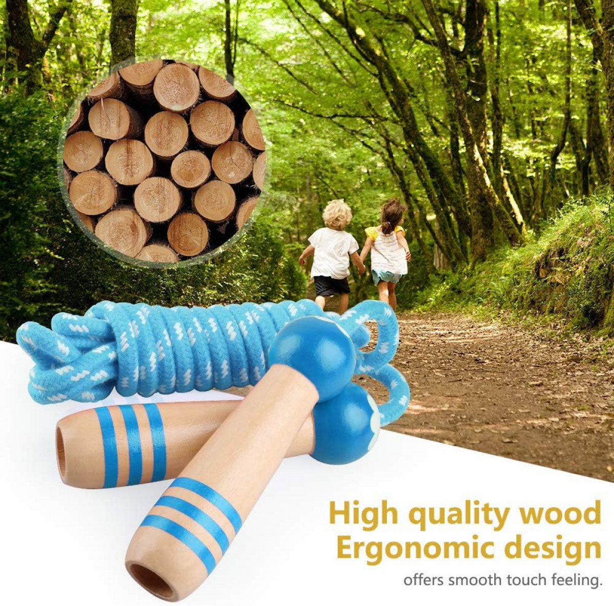 Lehké, ergonomické dřevěné rukojeti a odolné bavlněné lano pro bezpečné a pohodlné skákání