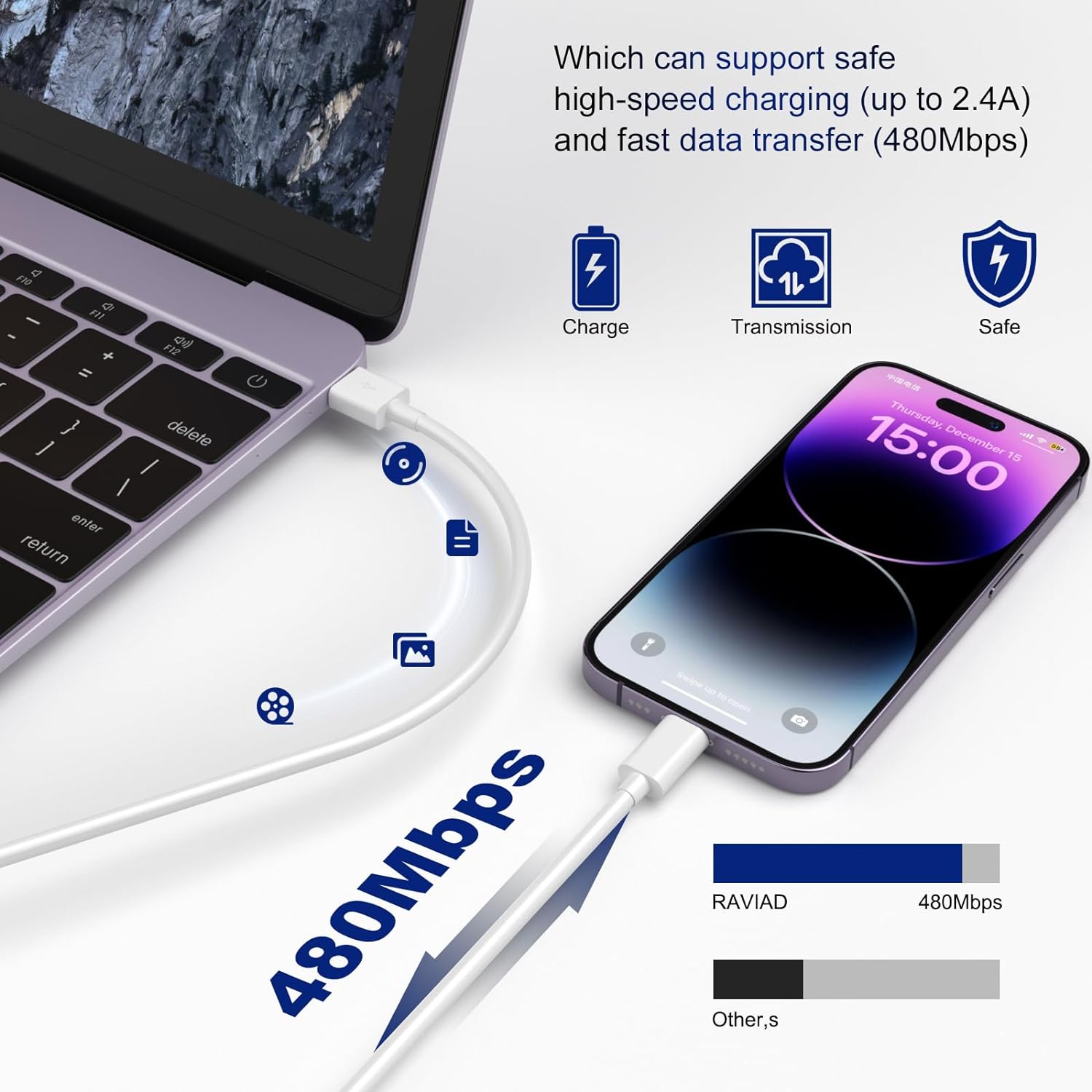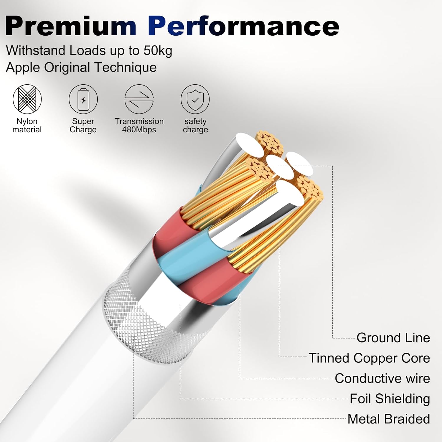 iPhone nabíjecí kabel s certifikací MFi je perfektním nástrojem pro bezpečné a rychlé nabíjení. Vestavěný MFi čip a prémiové měděné vodiče zajišťují až rychlost nabíjení 2,4A a přenosovou rychlost dat 480 Mbps, což garantuje spolehlivý výkon. Dlouhé lightning kabely jsou vyrobeny z vysoce čistého jádra a inteligentního lightning čipu, které zajišťují bezproblémovou kompatibilitu se zařízeními Apple.