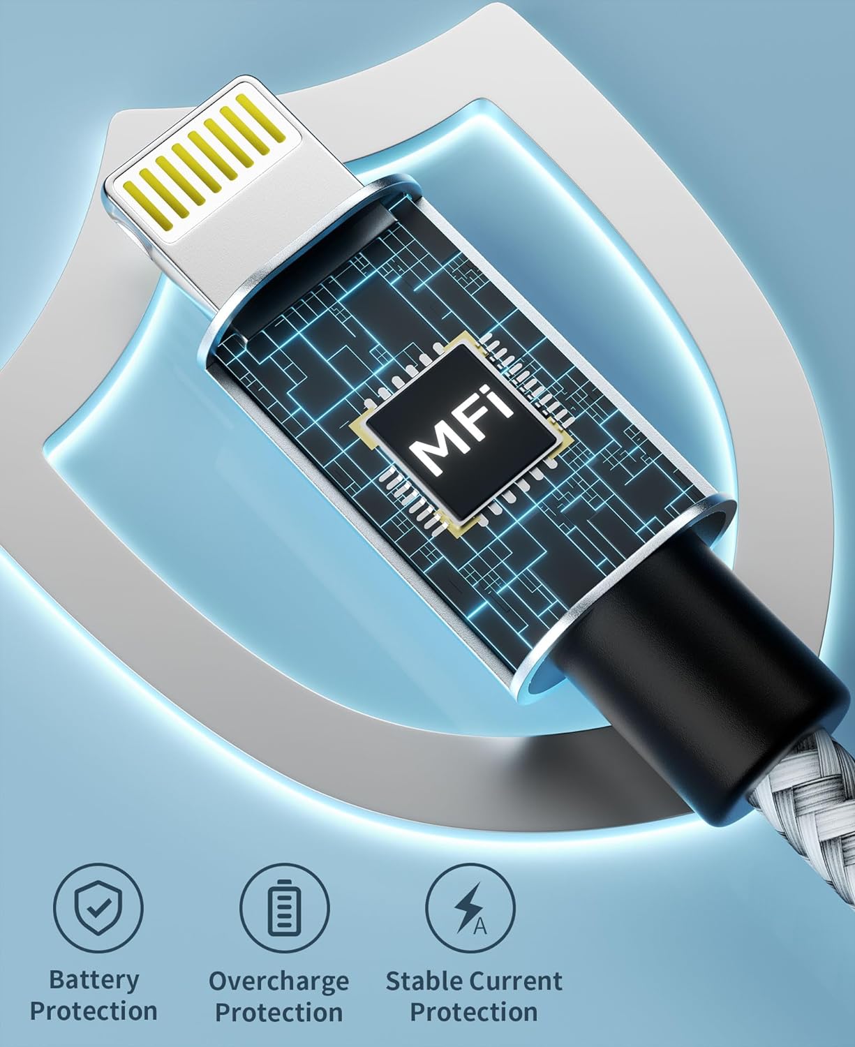 Bezpečný a rychlý: Tento iPhone nabíjecí kabel s certifikací MFi používá MFi čip a je vyroben z prémiových měděných vodičů. Dlouhé lightning kabely jsou vyrobeny z vysoce čistého jádra a inteligentního lightning čipu, který podporuje nabíjecí rychlost až 2,4A a přenosovou rychlost 480 Mbps.