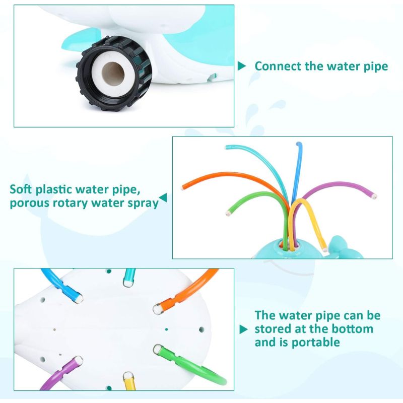 Tato roztomilá vodní hra ve tvaru velryby je perfektní volbou pro venkovní zábavu, zejména v horkých letních dnech. Voda stříkající z barevných pružných hadic nabízí vzrušující zážitek, zároveň rozvíjí koordinaci pohybu a podporuje aktivní hru. Vyrobena z odolného, dětem přátelského materiálu a snadno připojitelná k zahradní hadici, takže ji lze jednoduše zapojit na zahradě nebo na dvoře.