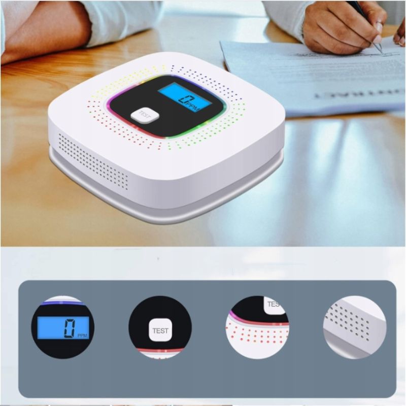 Vestavěný LCD displej při alarmu automaticky zobrazí detekovanou hladinu CO v ppm, čímž poskytuje přesné informace o míře nebezpečí. Během normálního provozu je displej v úsporném režimu a zelená LED dioda bliká, aby signalizovala pohotovostní stav zařízení.