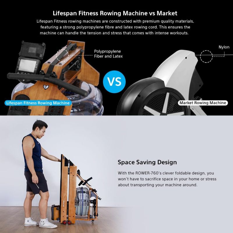 A Lifespan veslovací trenažér s vodním odporem z dřeva je ideální jak pro začátečníky, tak pokročilé, kteří touží po efektivním celotělovém tréninku v elegantním a prostorově úsporném provedení.