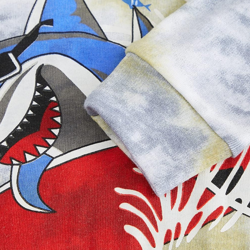 - Tie-dye vzor a zářivé barvy: Dinosauří a žraločí motivy, které jsou oblíbené u chlapců.