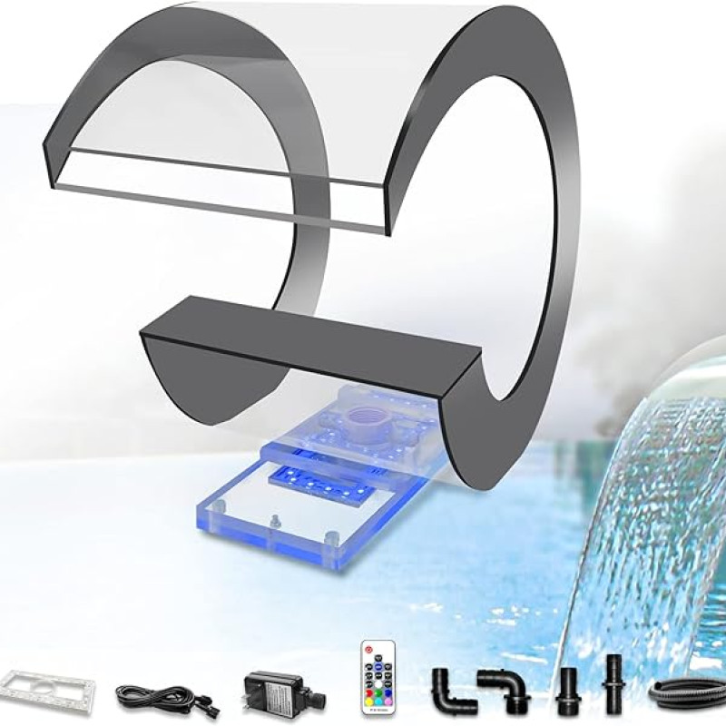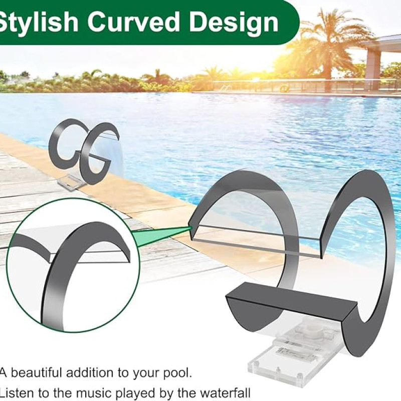 LONGRUN C-tvarovaný vodopádový výtok nerezová ocel bazénová fontána 36.3cm
