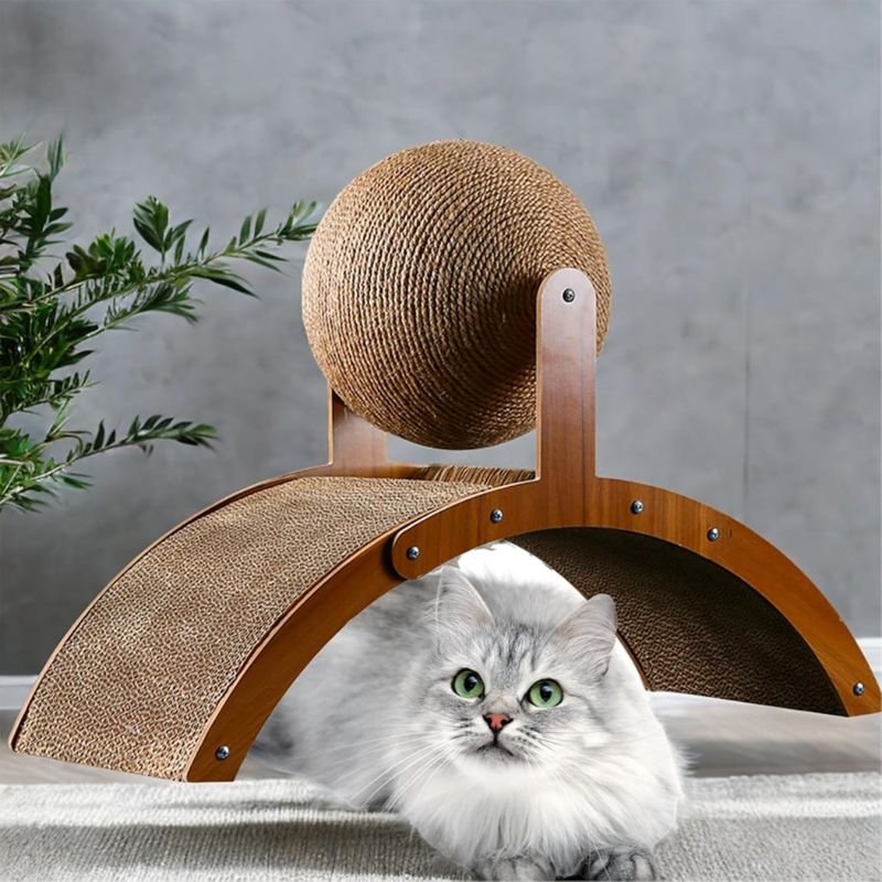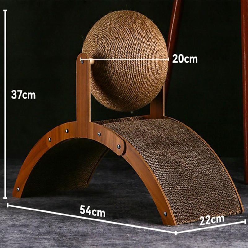 Tento škrabadlo z přírodního sisalu s zakřiveným mostem a míčkem je ideální volbou pro malé kočky, které rády škrábou, hrají si i odpočívají. Škrabadlo o rozměrech 54×22×37 cm je stabilní, úsporné na prostor a ideální pro vnitřní použití. Škrábací míček o průměru 20 cm z přírodního sisalu skvěle odolává poškrábání, takže si dlouhodobě udrží kvalitu. Zakřivená základna ve tvaru mostu není jen vizuálně atraktivní, ale také stimuluje kočky ke škrábání a pohybu.