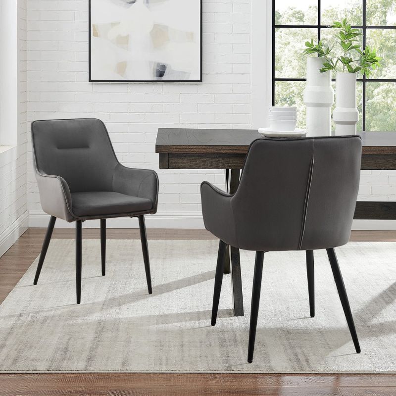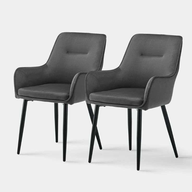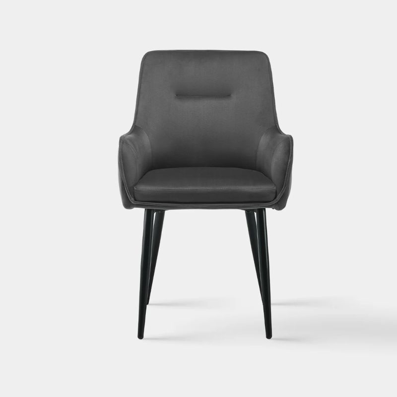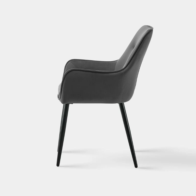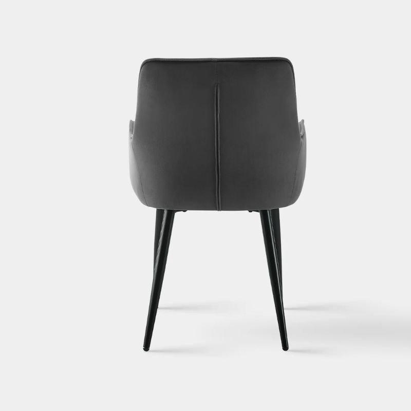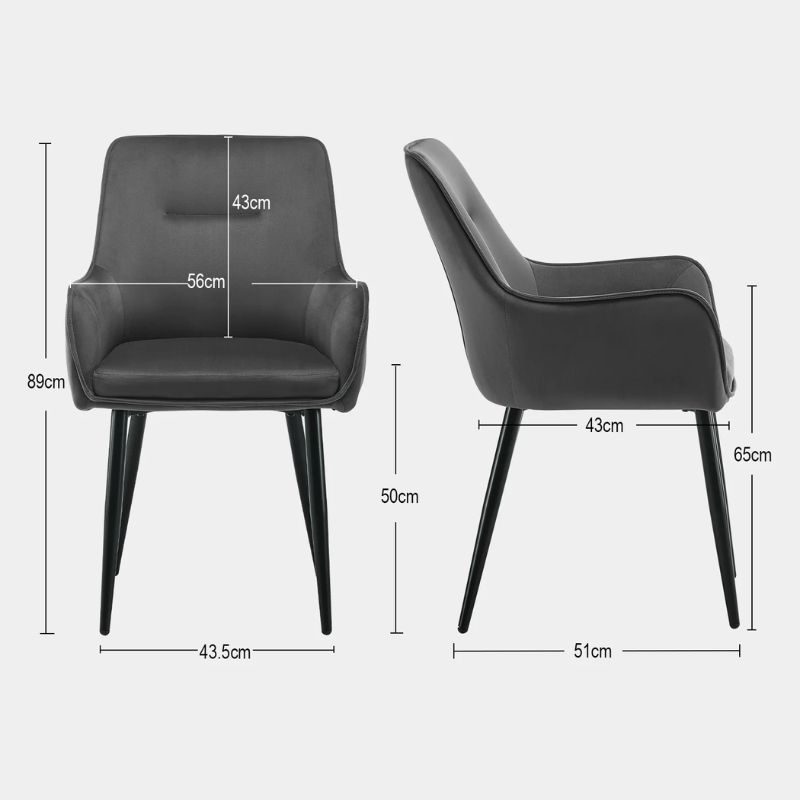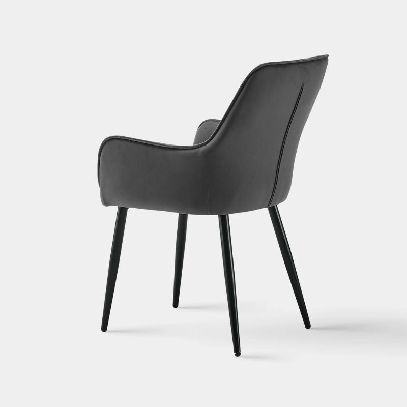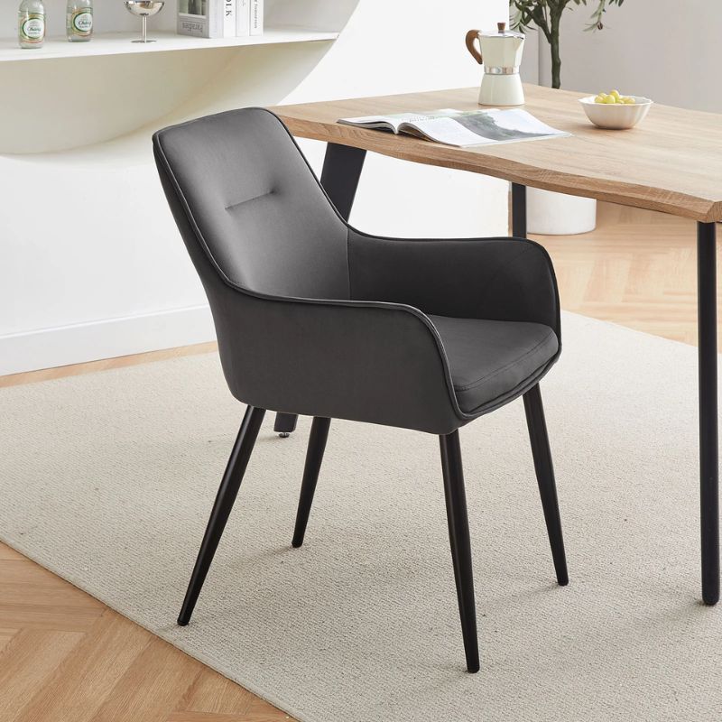Čalounění z vysoce kvalitního sametu je měkké a příjemné na dotek, vyzařuje eleganci a dodává židli exkluzivní vzhled. Dekorativní lemování a zakřivené područky ještě více zjemňují vzhled, takže židle stylově zapadne do jakéhokoli domácího interiéru.