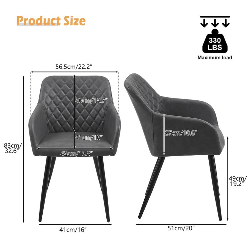 Moree tmavě šedá jídelní židle je díky svému modernímu a čistému vzhledu ideální volbou do jakéhokoli interiéru. Rozměry: 45 x 52 x 83 cm, výška sedáku 48 cm, která díky ergonomickému designu a silně polstrovanému sedáku poskytuje maximální pohodlí. Vysoce kvalitní PU kožené potažení je voděodolné a snadno se čistí, zatímco masivní černé kovové nohy zaručují stabilitu a dlouhou životnost.