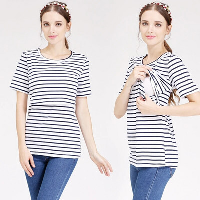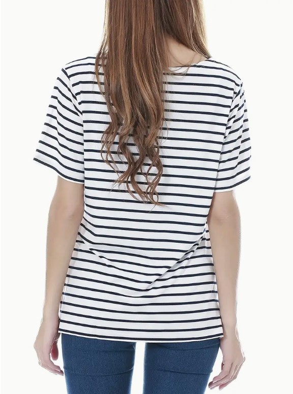 Černo-bílé pruhované vzory dodávají jednoduchý, ale výrazný styl, který se snadno kombinuje s jinými oděvy. Díky tomu není top jen praktickým, ale i módním doplňkem šatníku těhotných.
