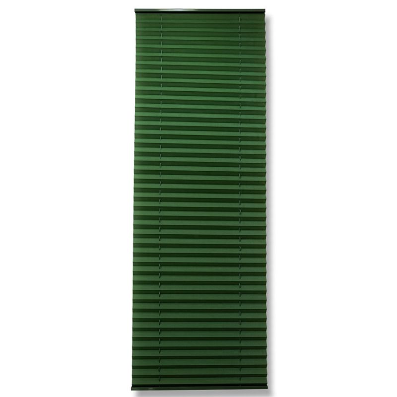Plisé roleta s šňůrkovým ovládáním, harmonikově skládána, je vyrobena ze 100% polyesterové textilie, která zajišťuje 100% zastínění a spolehlivou ochranu proti pohledu. Speciální konstrukce plisé umožňuje plynulé a přesné nastavení, takže množství pronikajícího světla lze snadno regulovat. Hladká tmavě zelená textilie nejenže působí esteticky, ale je také snadno čistitelná, stačí ji rychle osvěžit mírně vlhkým hadříkem.