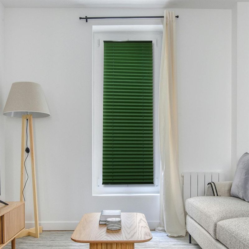 Tmavě zelená barva působí elegantně a přirozeně, harmonicky zapadá do moderních, klasických i rustikálních interiérů. Plisé je vynikající volbou do obývacího pokoje, ložnice, pracovny nebo kanceláře.