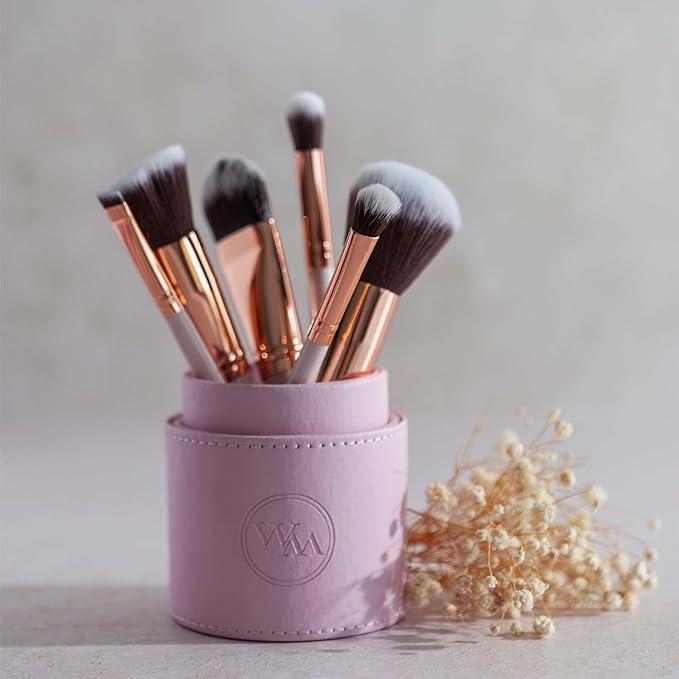 Růžová sada štětců na make-up s držákem - 15dílná profesionální sada štětců na make-up