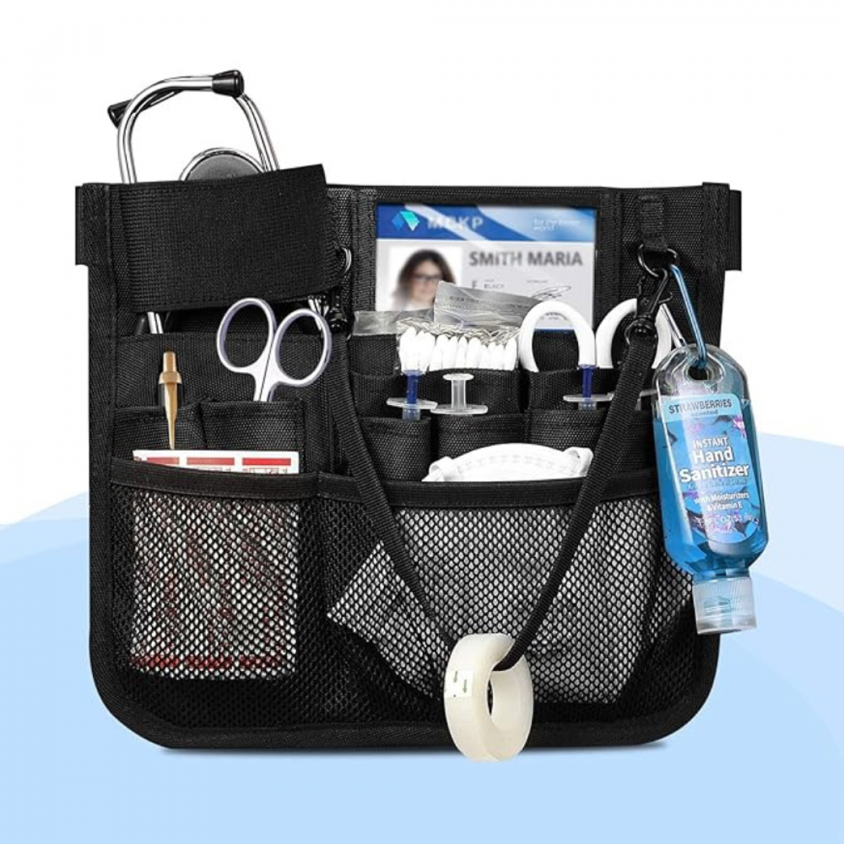 [Mějte věci na dosah ruky] – Pro zaneprázdněné lékaře obsahuje tento organizér na tašku s lékařským pásem vše, co potřebujete, a snadno a rychle se k tomu dostanete, což může zachránit život. Tento lékařský doplněk s více kapsami pojme pera, značkovače, teploměry a světelné pera.