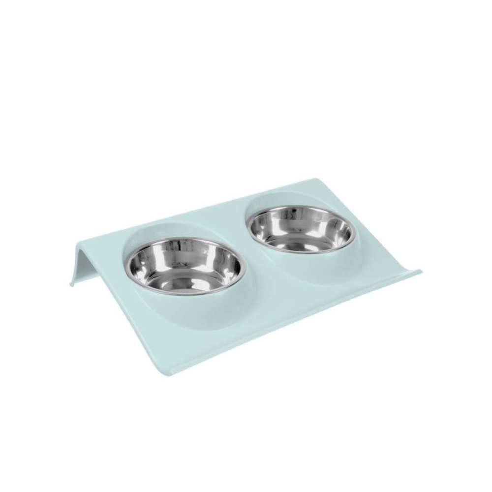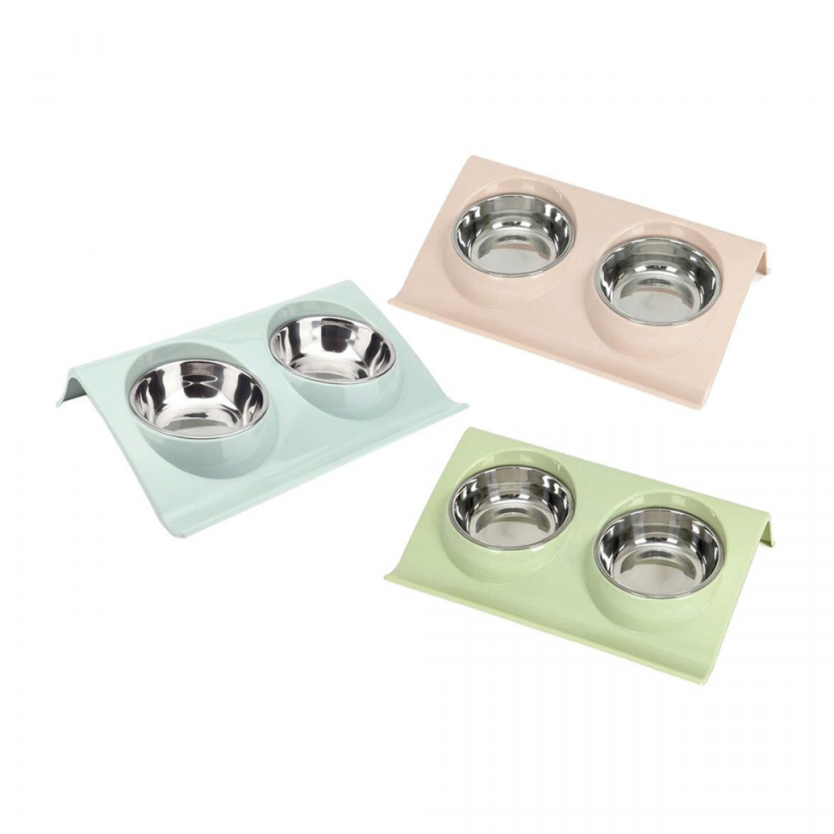 Dvojitý design misky: praktický design dvojité misky, kde se spojují miska na krmivo a miska na vodu. K dispozici v různých barvách pro více domácích mazlíčků. Vhodné pro psy, kočky, štěňata a koťata, ideální pro suché krmivo, mokré jídlo, pamlsky nebo vodu.