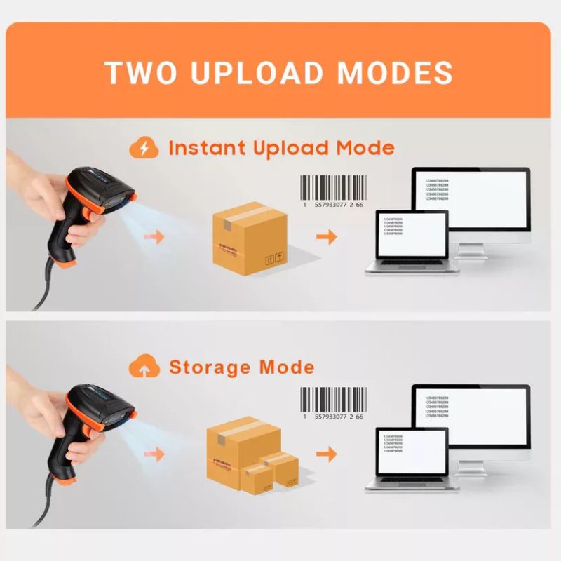 Čtečka čárových kódů podporuje režim Instant Upload, který přímo přenáší data do cílového zařízení, a také režim Storage, který umožňuje dočasné ukládání dat a jejich pozdější nahrání. To výrazně usnadňuje práci v rušném prostředí, kde je rychlé a přesné zpracování dat nezbytné.