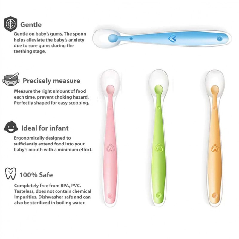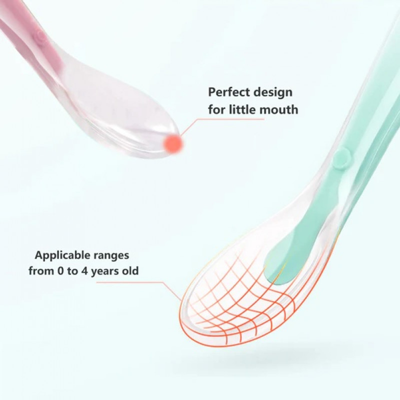 . Vysoce kvalitní materiály - Kojenecké lžičky jsou vyrobeny z potravinářského silikonu, jsou bez BPA, takže jsou zcela bezpečné pro děti. Měkká a pružná hlavička lžičky nepoškozuje citlivé dásně dítěte, takže zavádění pevné stravy je bezbolestné a pohodlné.