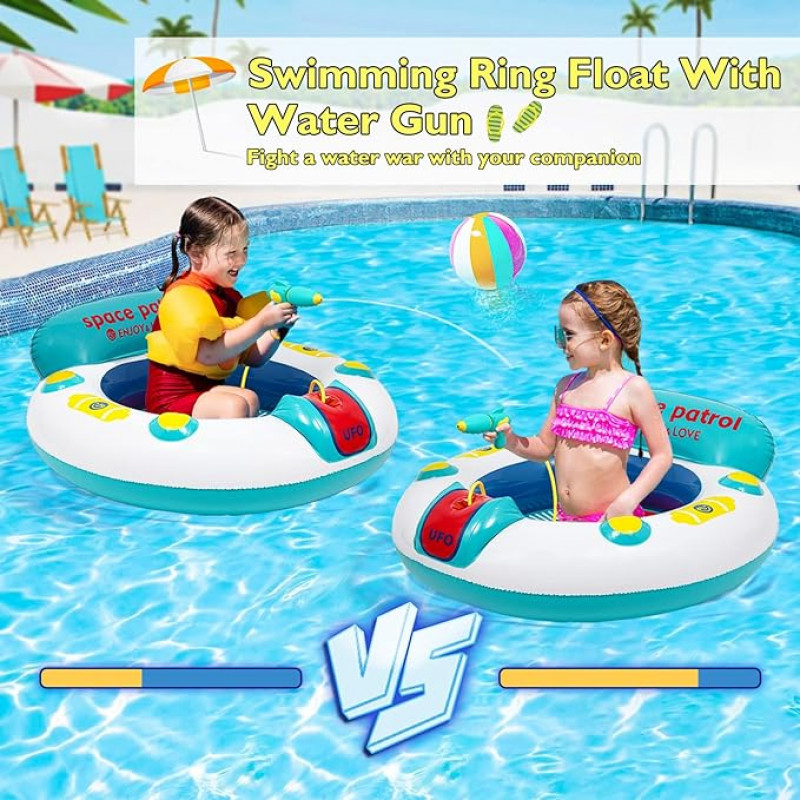 Objevte oblíbenou letní hru dětí – nafukovací kruh s designem UFO a vestavěnou vodní pistolí, která zaručeně oživí vodní dobrodružství a poskytne bezpečnou zábavu pro nejmenší!