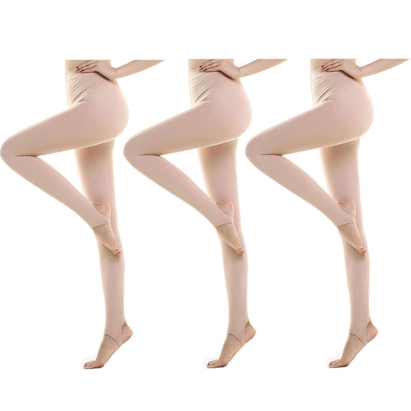 Yulaixuan 3 kusy Dámské punčocháče bez špičky - Béžová, Pohodlná sada