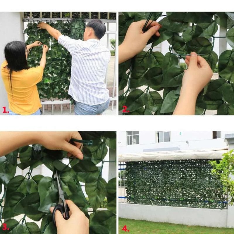 Tato umělá břečťanová listová rostlinná stěna je dekorace s přirozeným vzhledem, ideální pro estetickou a praktickou výzdobu vnitřních i venkovních prostor.