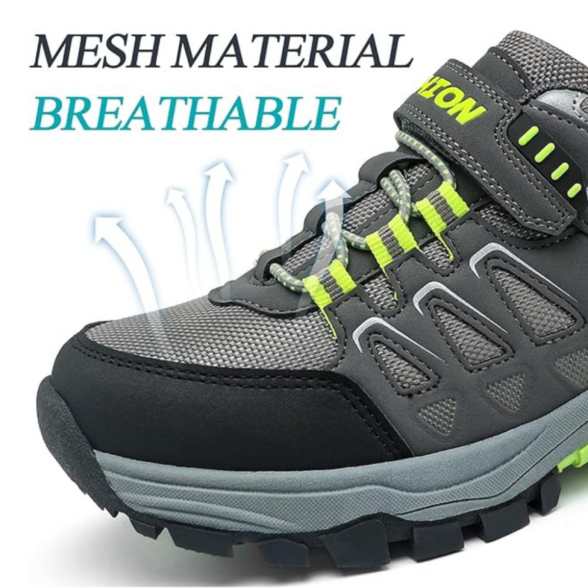 Der ASHION Kinder-Wanderschuh ist in Größe 36 und modernem Grün gefertigt und der perfekte Begleiter für Outdoor-Abenteuer. Das atmungsaktive PU+Mesh-Obermaterial sorgt für optimale Belüftung, sodass der Fuß stets trocken und bequem bleibt. Das weiche Futter und die gepolsterte Innensohle bieten zusätzlichen Komfort, während die Knöchelschutzkonstruktion hilft, Verletzungen zu vermeiden.