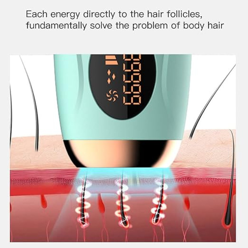 Das türkisgrün-bronzefarbene IPL-Haarentfernungsgerät ist die ideale Wahl für alle, die dauerhaft glatte und haarfreie Haut ohne Irritationen durch Rasieren oder Waxing wünschen. Dank der klinisch bewährten Lichtimpulstechnologie zielt das Gerät direkt auf die Haarfollikel ab und sorgt so nach einigen Wochen regelmäßiger Anwendung für sichtbare Ergebnisse.