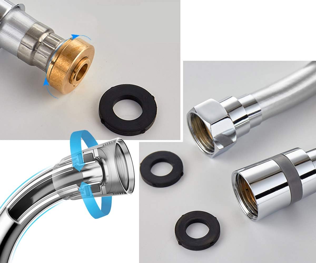 Der Duschschlauch mit standardisiertem G1/2-Anschluss lässt sich in wenigen Minuten montieren und ist mit den meisten Duschköpfen und Duschsystemen kompatibel. Er verfügt über einen auslaufsicheren Messinganschluss und eine Gummidichtung, die Wasserverlust verhindert, wodurch er eine wirtschaftliche und zuverlässige Wahl ist.