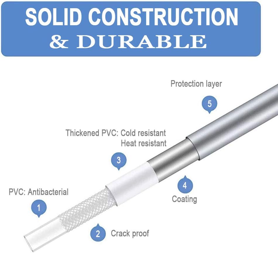 Der 2 Meter lange Duschschlauch ist die ideale Wahl, wenn du eine bequemere und langlebigere Lösung für die tägliche Dusche suchst. Hergestellt aus hochwertigem PVC-Material, das hitze- und kältebeständig ist und für alle Familienmitglieder völlig sicher ist. Dank der 360° drehbaren, verdrehungssicheren Konstruktion bricht der Schlauch nie, sodass stets ein ungestörter Wasserfluss gewährleistet ist.