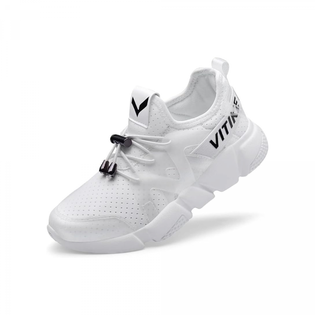 A Vitike edzőcipő ultrakönnyű kialakításának köszönhetően nem terheli a lábat, így ideális választás sporttevékenységekhez, például futáshoz, teniszhez, fitneszhez vagy atlétikához. Stílusos fehér színe és modern megjelenése miatt divatos kiegészítője lehet a hétköznapi öltözetnek is. Egyszerűen tisztítható nedves ruhával, így könnyen karbantartható. Ez a gyerek edzőcipő azoknak ajánlott, akik a kényelem, a biztonság és a divatos design tökéletes kombinációját keresik.