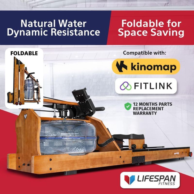 A Lifespan vízellenállásos fa evezőgép tökéletes kezdőknek és haladóknak egyaránt, akik teljes testes, hatékony edzésre vágynak stílusos és helytakarékos kivitelben.