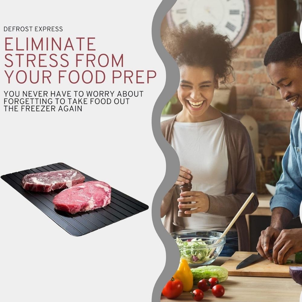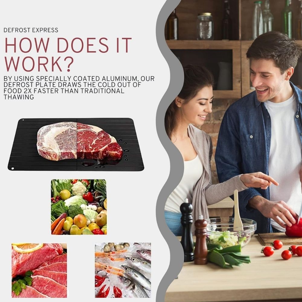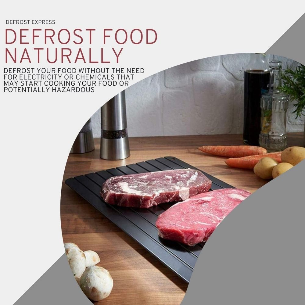 Szybka i Bezpieczna Tacka do Rozmrażania Mięsa i Jedzenia – Nieprzywierająca, Bez Chemikaliów i Prądu